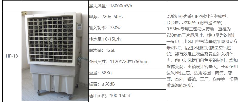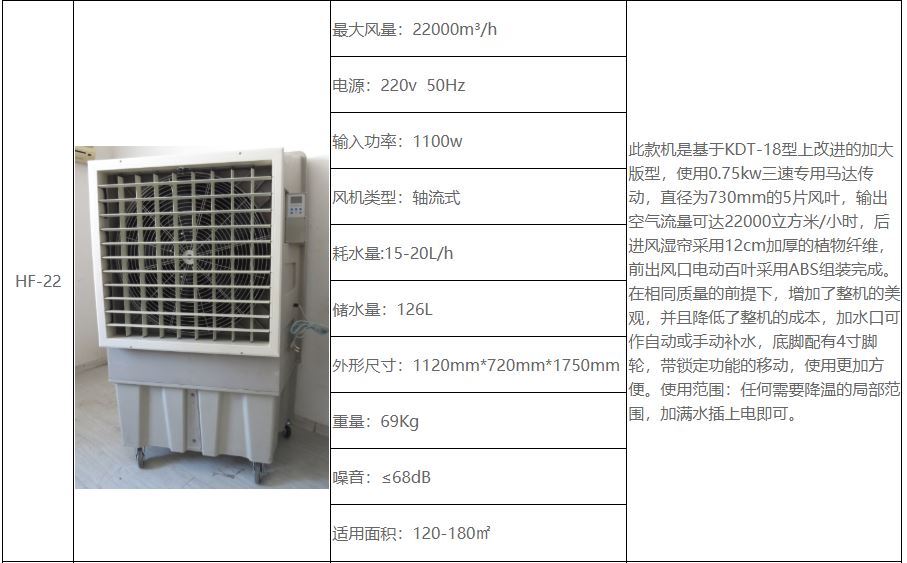 • HF-220A【基本介绍】: 移动环保空调适应用于大型餐厅、会议室、网吧、商场,工厂大型娱乐场所等需要通风降温的地方。移动环保空调可以通风降温换气、净化空气、节能环保、加湿空气、调解温度。三挡风速,三种风格,风感更轻柔,风感更舒服,吹出来的风舒适健康,湿润不干燥,使用方便220电源,哪里需要哪里推。浩风移动环保空调型号众多,无论是家用还是工业都有值得您选择的那款。
